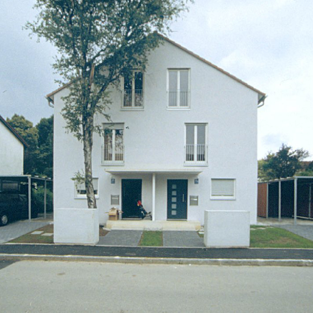 Ein in die Jahre gekommenes, in den 1960er Jahren erbautes, Zweifamilienhaus sollte nach dem Tode der Großeltern modernisiert und neuen Nutzungsanforderungen gerecht werden. Es wurden die Möglichkeiten einer einfachen Sanierung bis zum kompletten Abbruch untersucht. Als wirtschaftlichste und zukunftsorientierteste Lösung erwies sich die Komplettentkernung mit Aufstockung des Bestands bei gleichzeitiger Umgestaltung in zwei Doppelhaushälften mit Realteilung des Grundstücks.