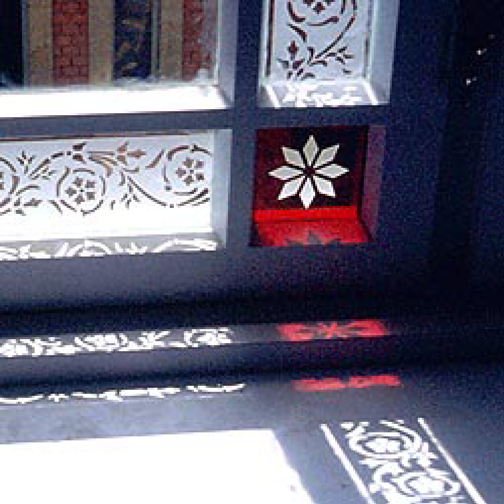 Bei der Innengestaltung wurde von Seiten des Architekten und des Bauherrn besonderer Wert auf die Verwendung von originalen Elementen bzw. fachmännische Nacharbeitungen derselben gelegt: mit Jugendstil-Fensterglas, ornamentalen Türbeschlägen, Wand- und Treppengestaltung im ursprünglichen Elbsandstein wurde dem Gebäude sein regionaler städtebaulicher Charakter wieder gegeben.