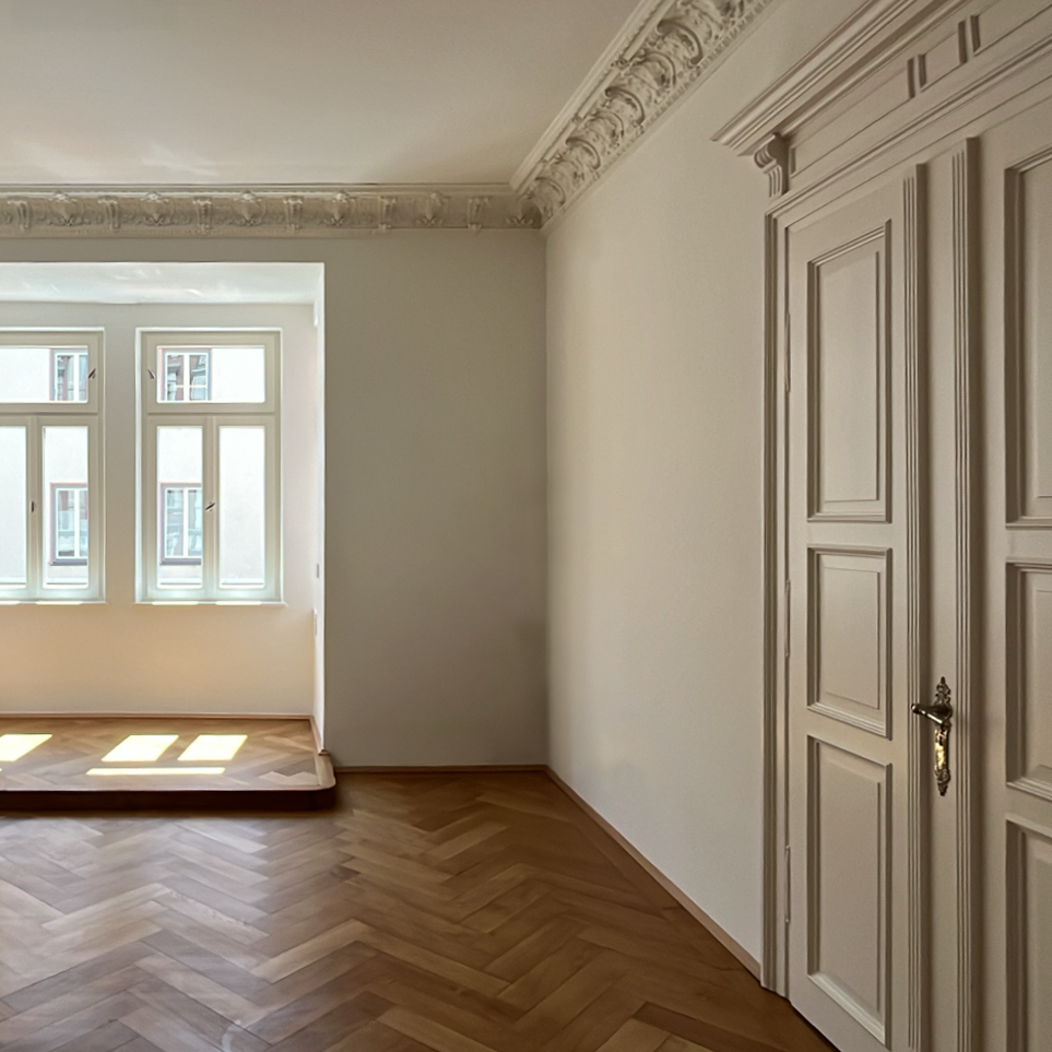 Wie so häufig bei historischem Bestand zeigten sich während der Bauzeit unvorhersehbare verborgene Schäden am Gebäude. Dank unserer langjährigen Erfahrung im Bereich der Altbausanierung konnten wir dennoch im Ergebnis sowohl Kosten, Termine als auch die erwünschte Qualität einhalten.