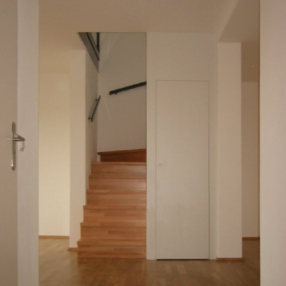 Entstanden sind fünf individuelle großzügige Wohnungen mit völlig unterschiedlichen Grundrissen, die aber alle auch eine Menge gemeinsam haben: Jede Einheit ist sowohl zur Hausvorder- als auch zur Rückseite hin ausgerichtet, zieht sich über zwei Etagen, verfügt über eine eigene Dachterrasse und gewährt zudem noch einen phantastischen Panoramablick auf den Münchner Olympiaturm.