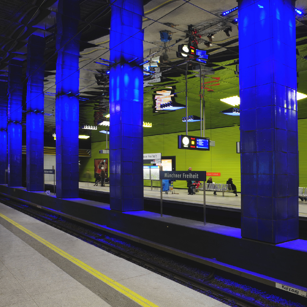 Die Instandsetzung und Modernisierung des U- Bahnhofes Münchner Freiheit erfolgte zeitgleich mit der Fertigstellung der neuen Trambahnlinie, so dass der gesamte Komplex den Ansprüchen an einen modernen Verkehrsknotenpunkt öffentlicher Verkehrsmittel gerecht wird.